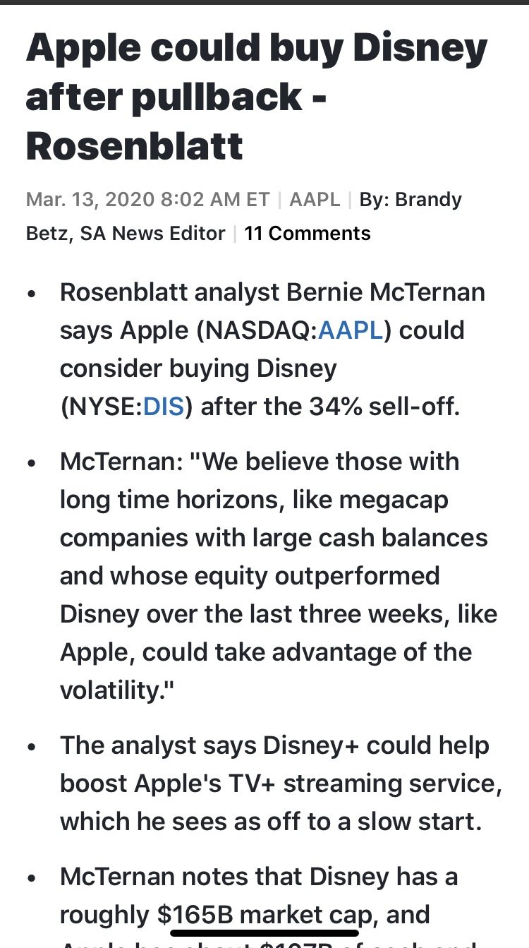 누가 뭐 인수한다더라 아님 애플이 디즈니를 인수한다더라 하는 기사가 나오면
